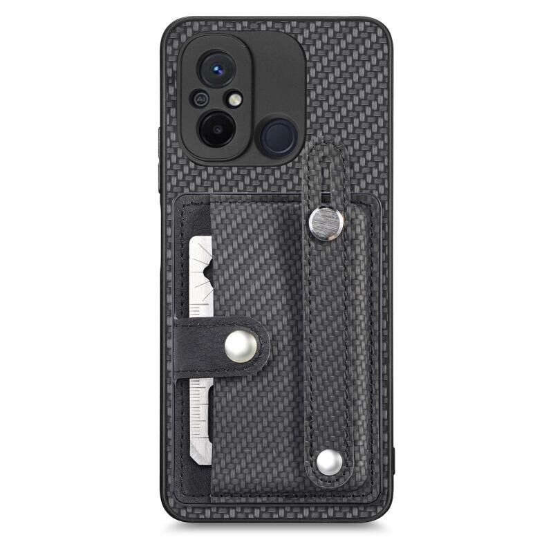 Για Redmi 12C Wristband Kickstand κάρτα πορτοφόλι πίσω τηλέφωνο υπόθεση με εργαλείο μαχαίρι (Μαύρο)