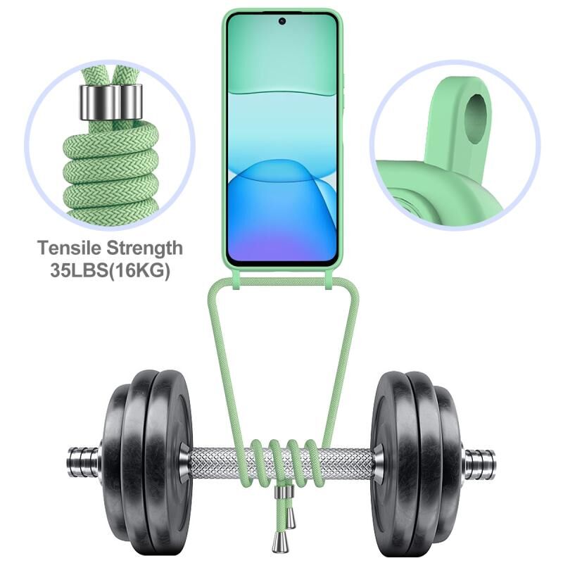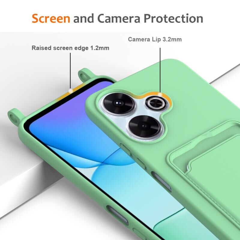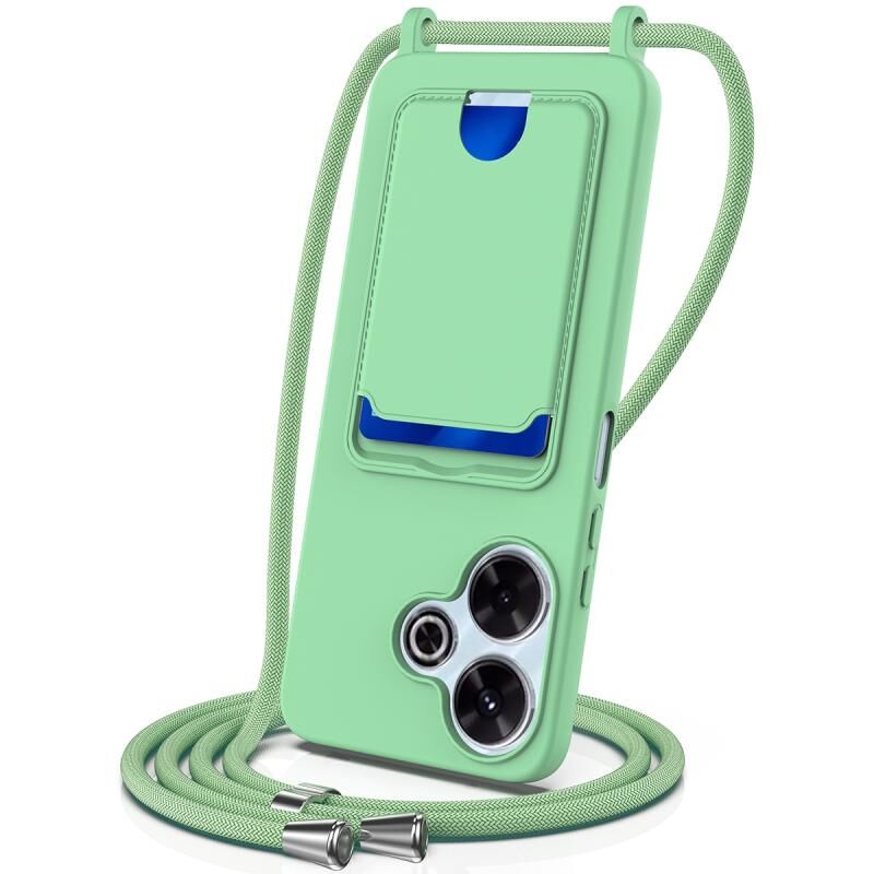 Για Redmi 13 4G / 5G / Σημείωση 13R 5G ενσωματωμένη κάρτα τσάντα τσάντα στερεό χρώμα υγρό σιλικόνης τηλέφωνο υπόθεση με κορδόνι (πράσινο)