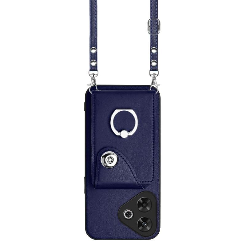 Για Redmi 13 4G / 5G Οργάνου κάρτα τσάντα δαχτυλίδι κάτοχος υπόθεση τηλέφωνο με μακρύ κορδόνι (μπλε)