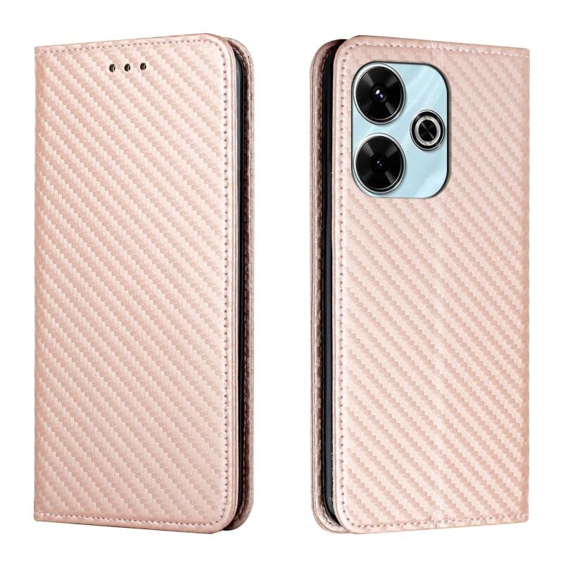 Θήκη τηλεφώνου από δέρμα με μαγνητικό κλείσιμο και υφή ανθρακονήματος για Redmi 13 4G (Μπλε)