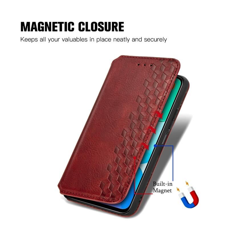 Για Redmi 13 4G Cubic Grid πιέζεται μαγνητική δερμάτινη θήκη τηλεφώνου (κόκκινο)