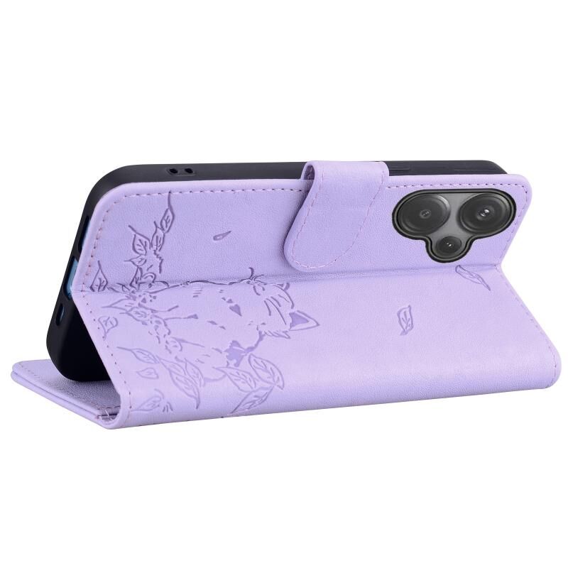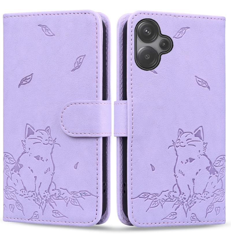 For Redmi 13 4G Cute Cat Embossed Leather Phone Case(Purple)