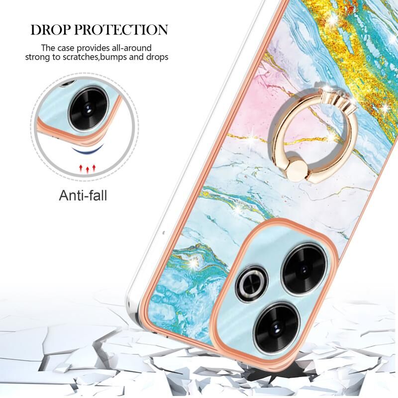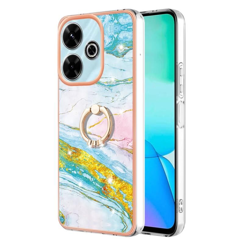 Θήκη τηλεφώνου Redmi 13 4G με Ηλεκτρολυτική Επικάλυψη, Μάρμαρο IMD, TPU με Δακτύλιο Στήριξης (Λευκό 006)