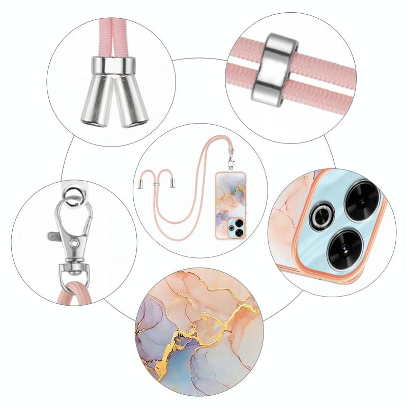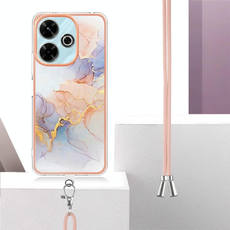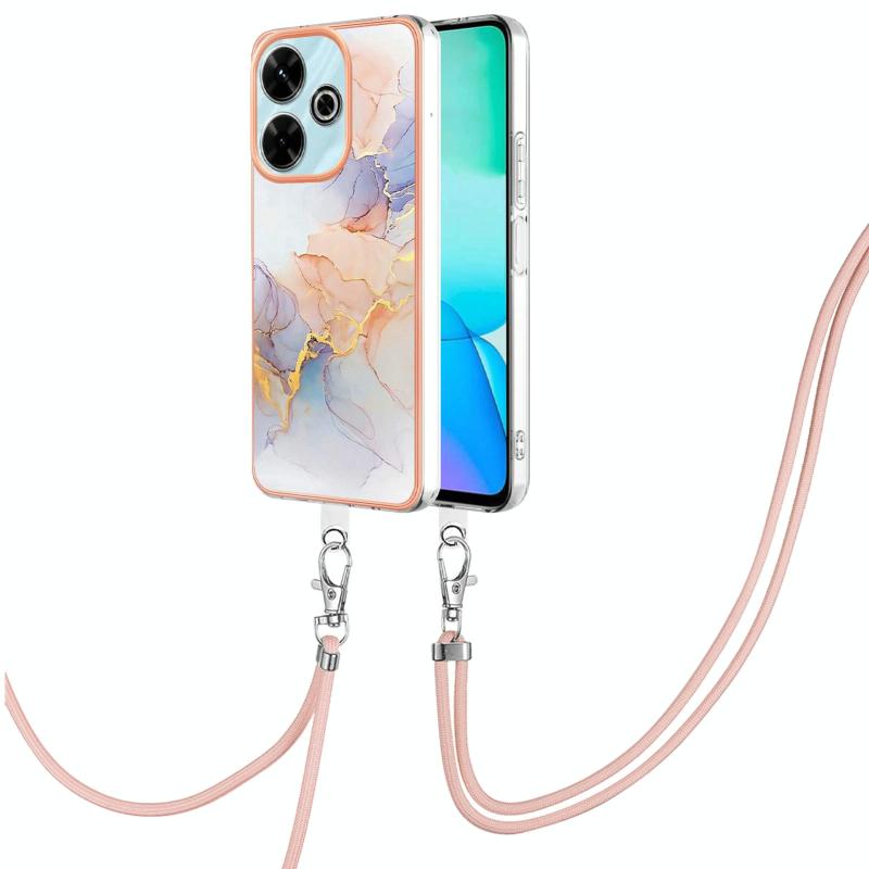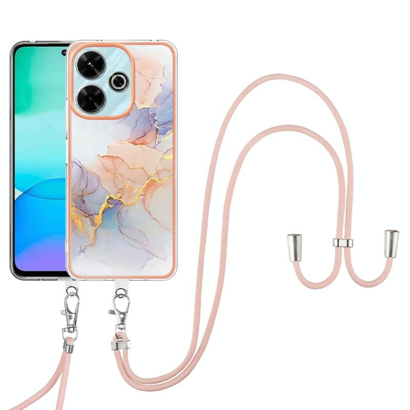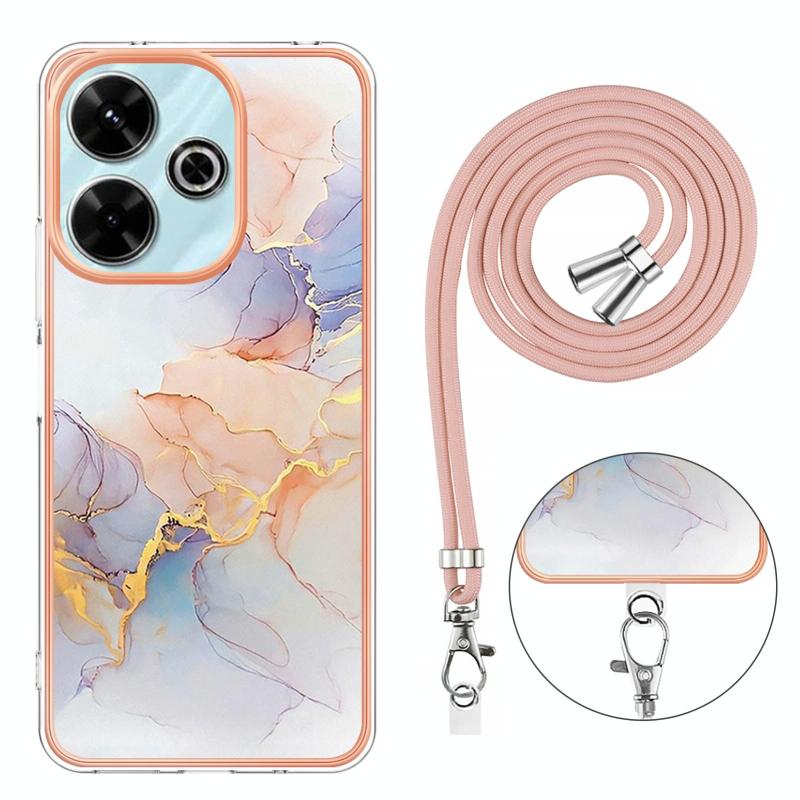 Θήκη TPU με Λουρί Λαιμού και Σχέδιο Electroplating για Redmi 13 4G (Milky Way Λευκό Μάρμαρο)