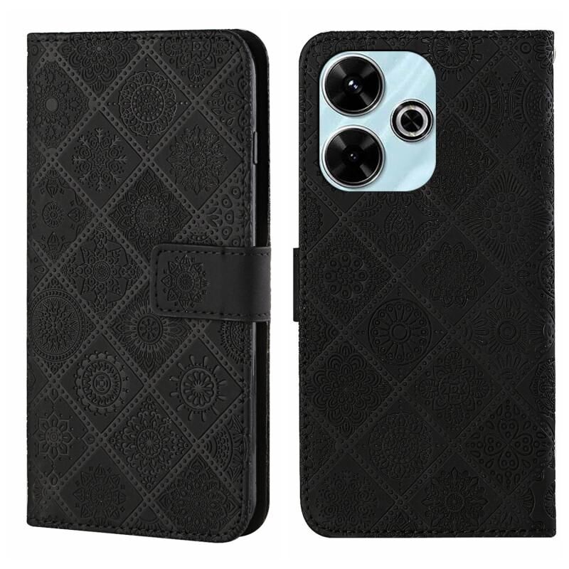 Για Redmi 13 4G Ethnic στυλ ανάγλυφο μοτίβο δερμάτινη θήκη τηλεφώνου (μαύρο)