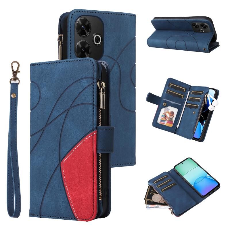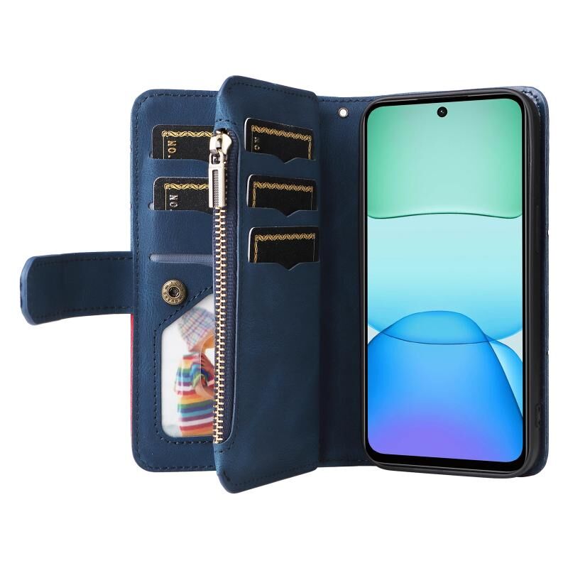 Για Redmi 13 4G Global Dual-χρώμα 9 υποδοχές καρτών φερμουάρ πορτοφόλι δερμάτινη θήκη τηλεφώνου (μπλε)