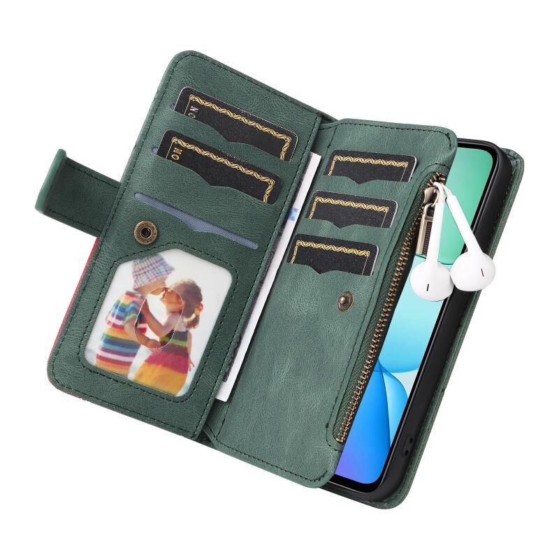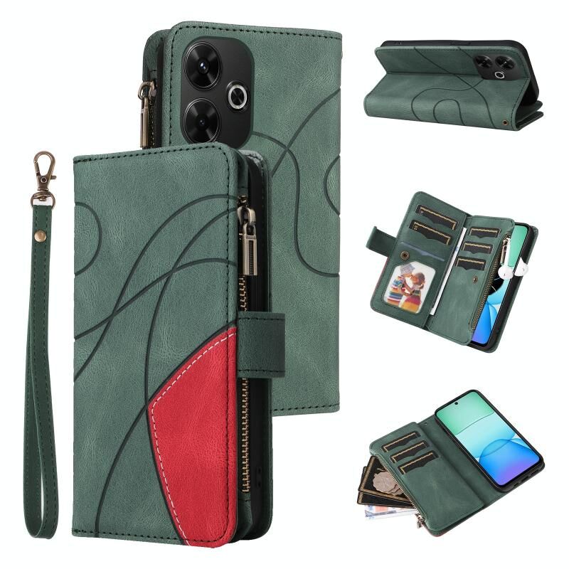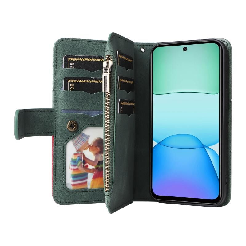 Για Redmi 13 4G Global Dual-χρώμα 9 καρτών υποδοχές φερμουάρ πορτοφόλι δερμάτινη θήκη τηλεφώνου (πράσινο)