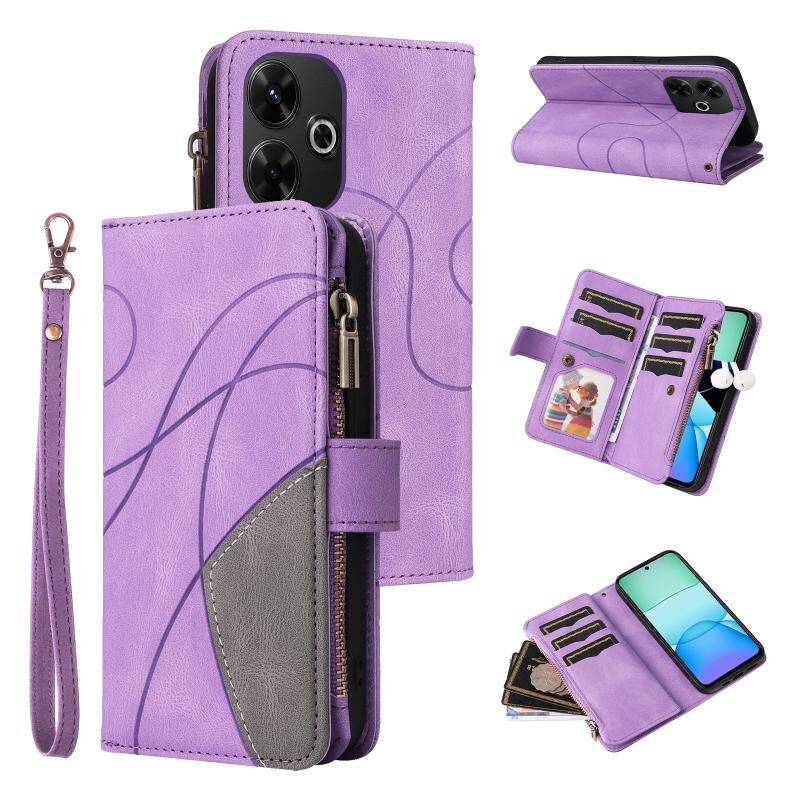 Για Redmi 13 4G Global Dual-χρώμα 9 υποδοχές καρτών φερμουάρ πορτοφόλι δερμάτινη θήκη τηλεφώνου (μωβ)