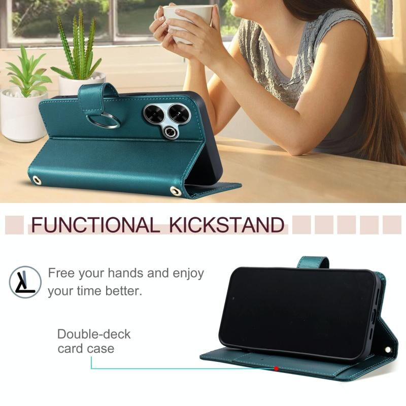 Για Redmi 13 4G Παγκόσμια δαχτυλίδι πόρπη Rhombic δερμάτινη θήκη τηλεφώνου (πράσινο)