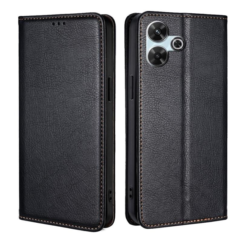 Για Redmi 13 4G γυαλιστερό λάδι στερεό χρώμα μαγνητική δερμάτινη θήκη τηλεφώνου (μαύρο)
