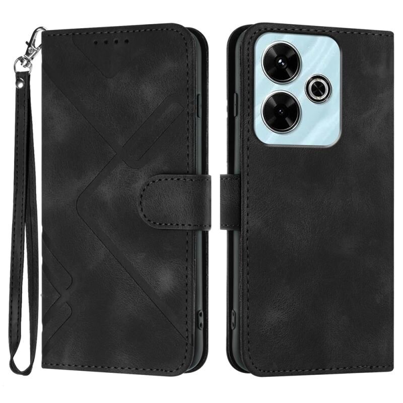 Για Redmi 13 4G Γραμμή μοτίβο δέρμα δέρμα αίσθηση τηλέφωνο υπόθεση (μαύρο)