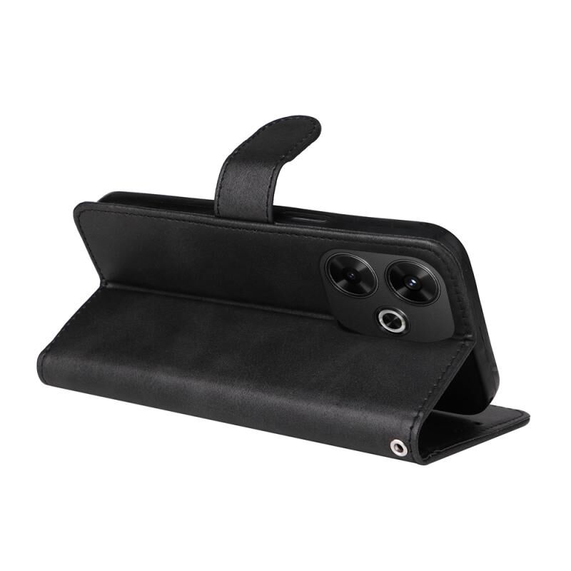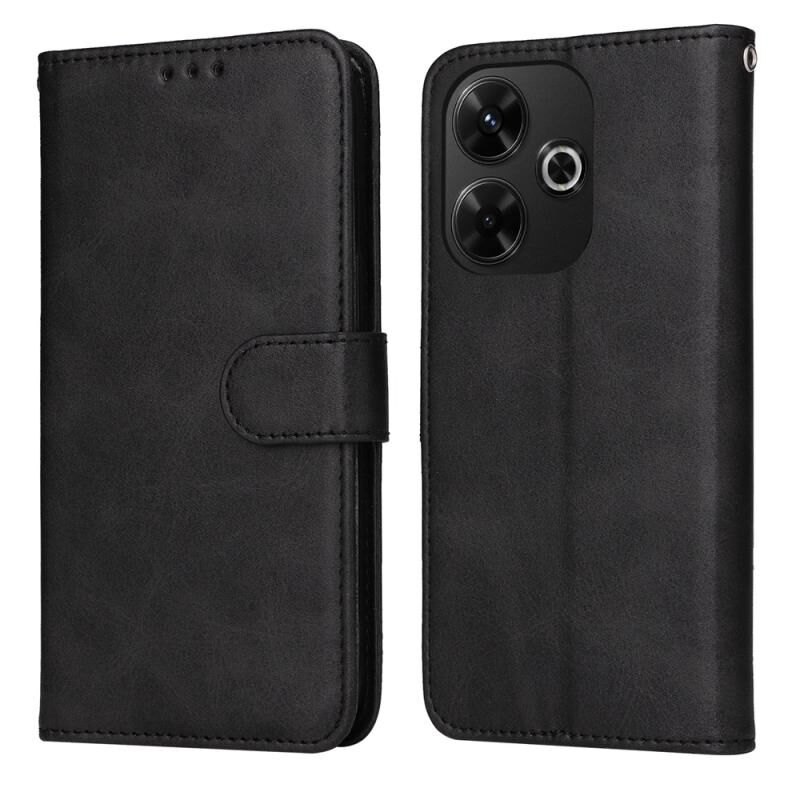 Θήκη τηλεφώνου από δέρμα με υφή μοσχαριού, τύπου flip, για Redmi 13 4G / Note 13R Classic (Μαύρο)