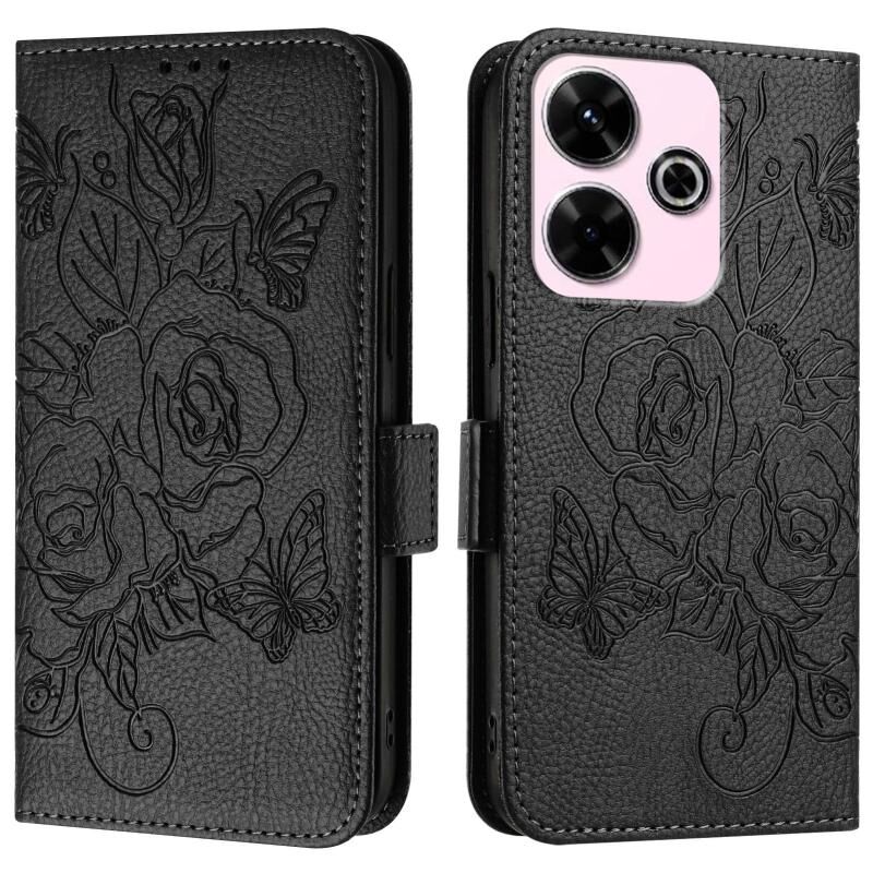For Redmi 13 4G / Note 13R Embossed Rose RFID Anti-theft Leather Phone Case(Black)
