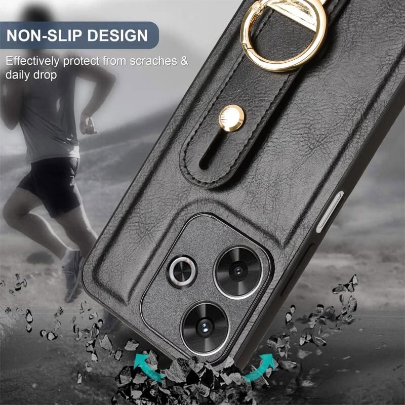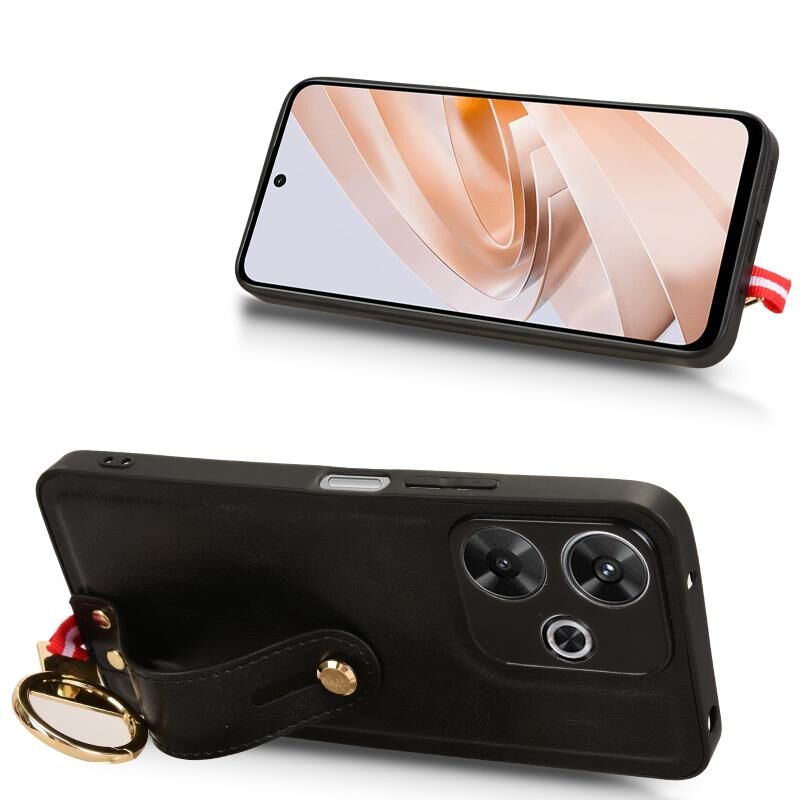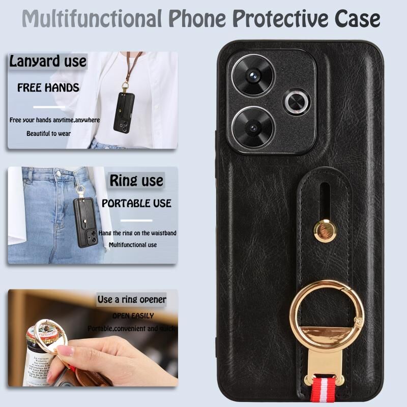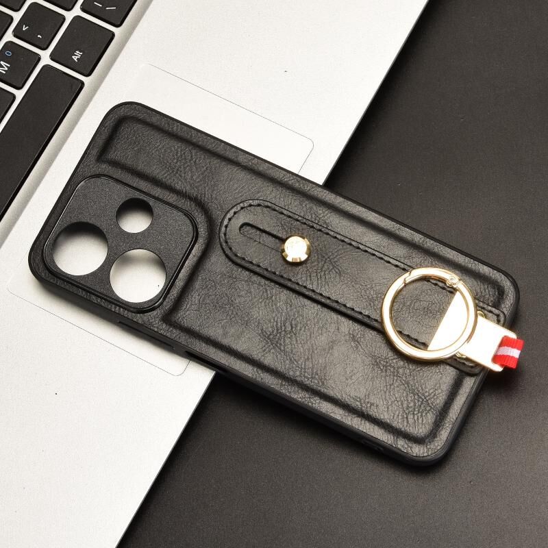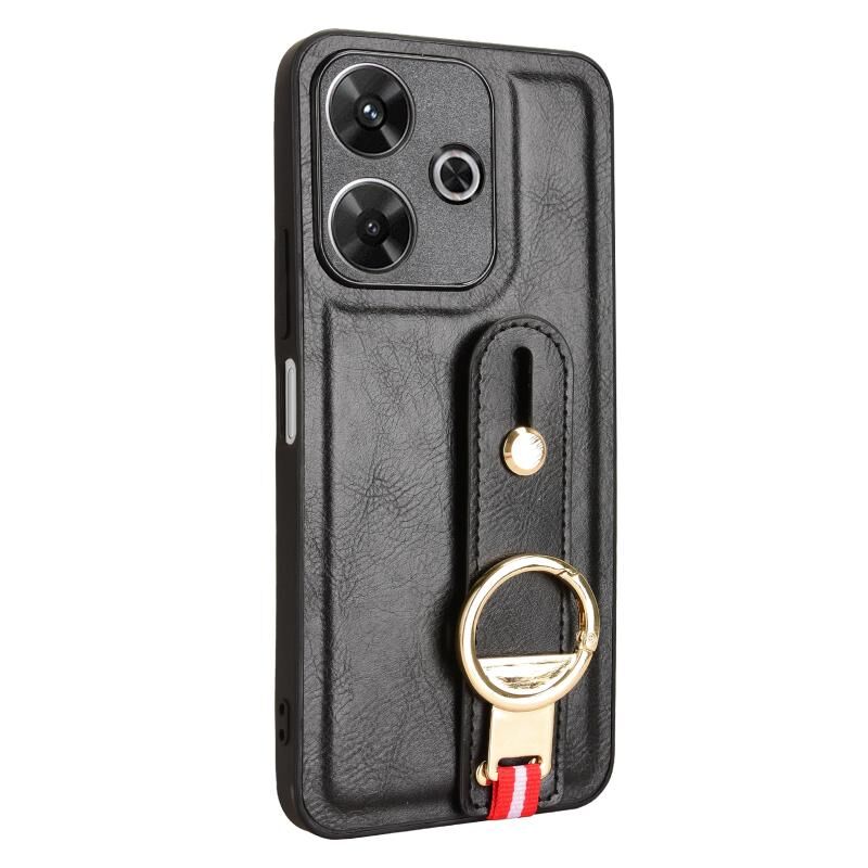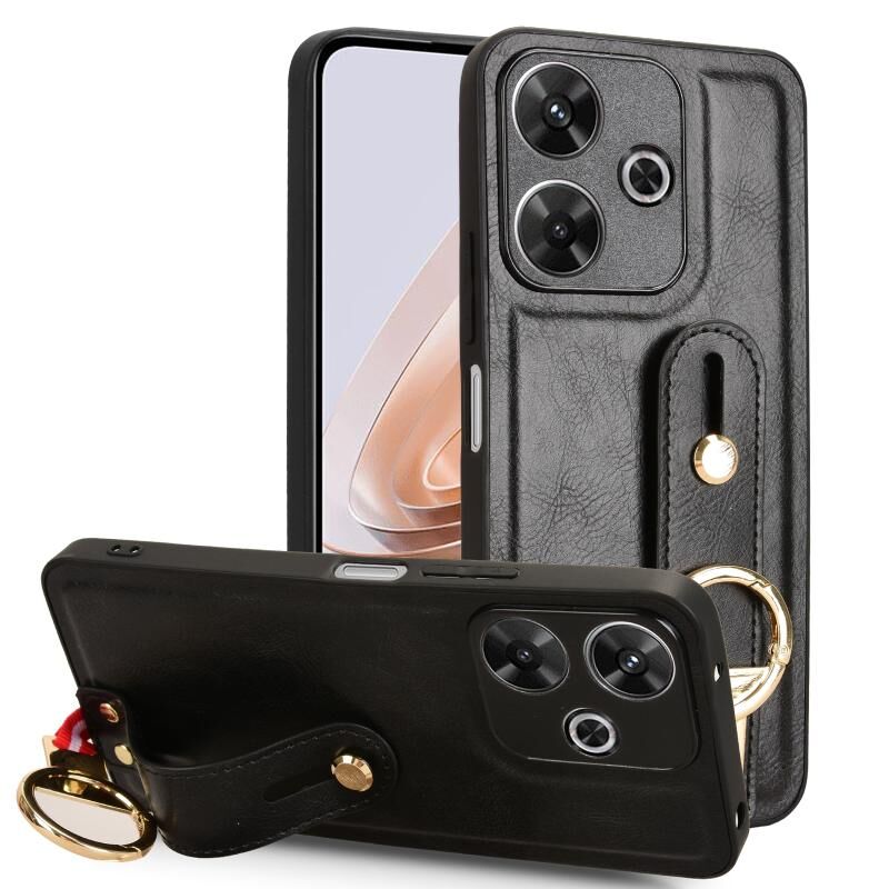 For Redmi 13 4G / Note 13R Wristband Leather Back Phone Case(Black)