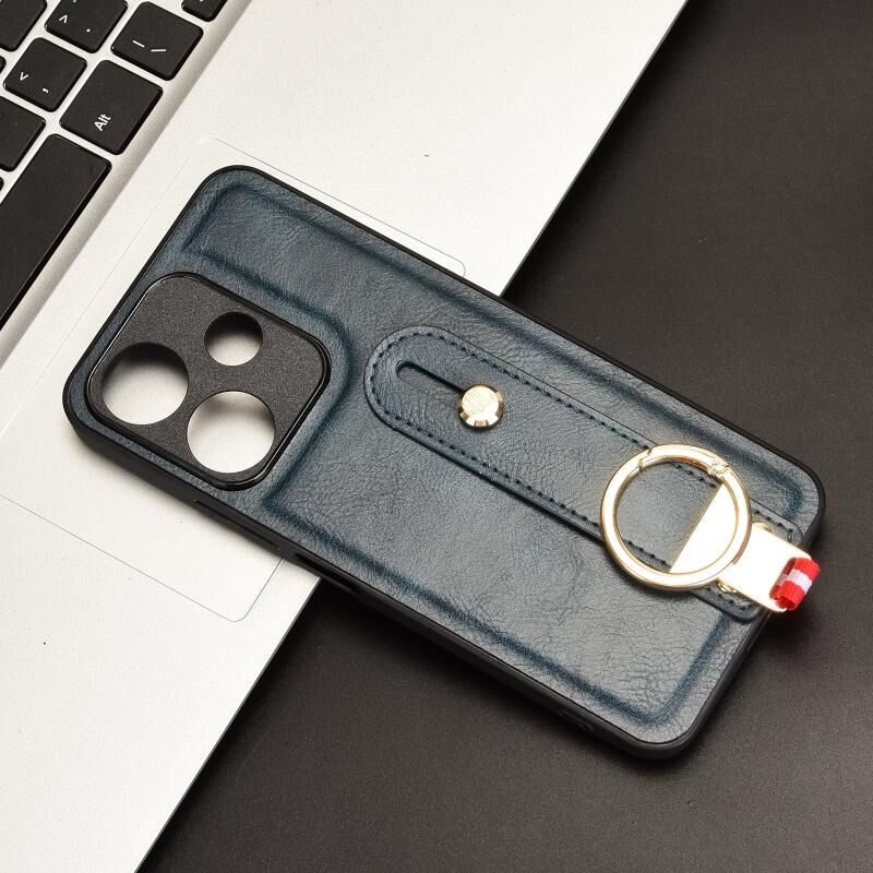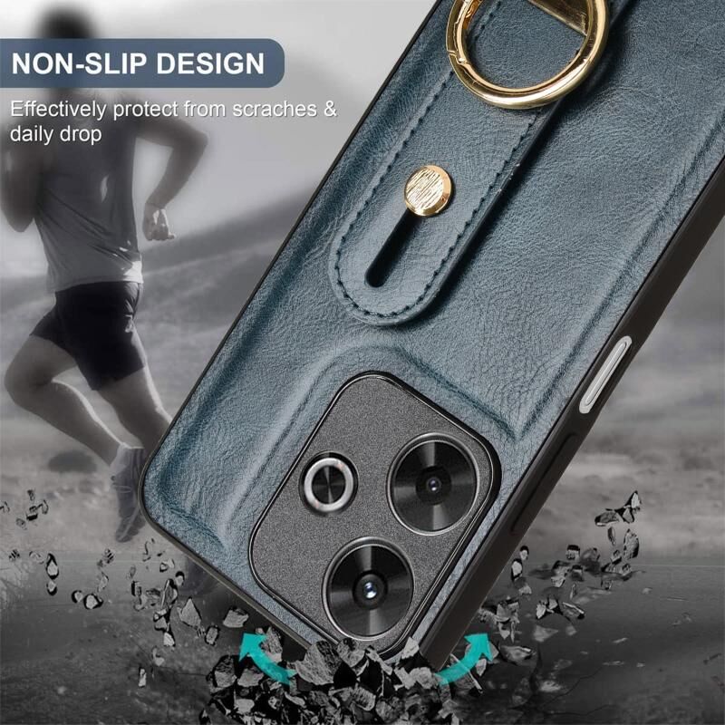 For Redmi 13 4G / Note 13R Wristband Leather Back Phone Case(Blue)