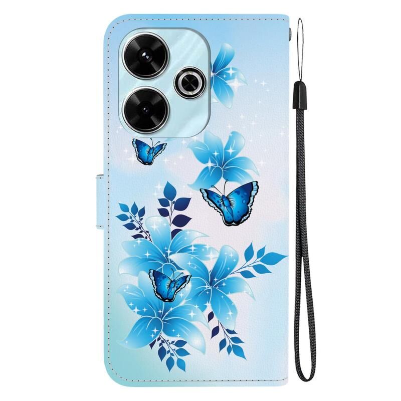 Θήκη τηλεφώνου από δέρμα με πολύχρωμη σχεδίαση κρυστάλλινης υφής για Redmi 13 4G / Poco M6 (Λευκά φτερά πεταλούδας)