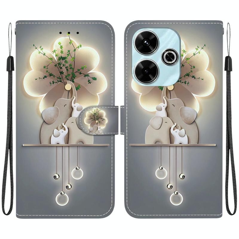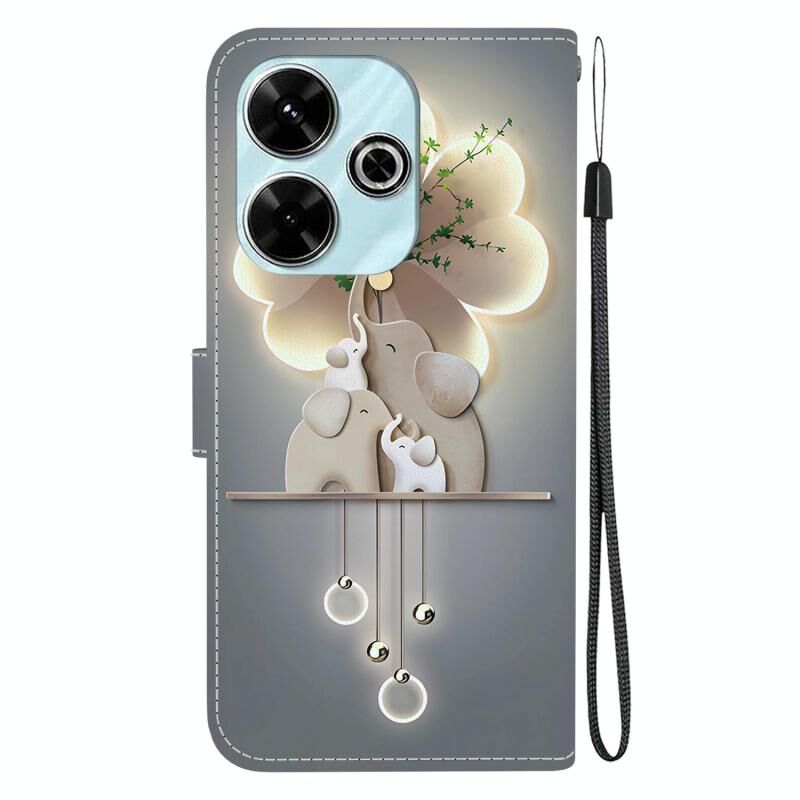 Θήκη τηλεφώνου από δέρμα με κρυσταλλική υφή και έγχρωμη σχεδίαση για Redmi 13 4G / Poco M6 (Ελέφαντες)