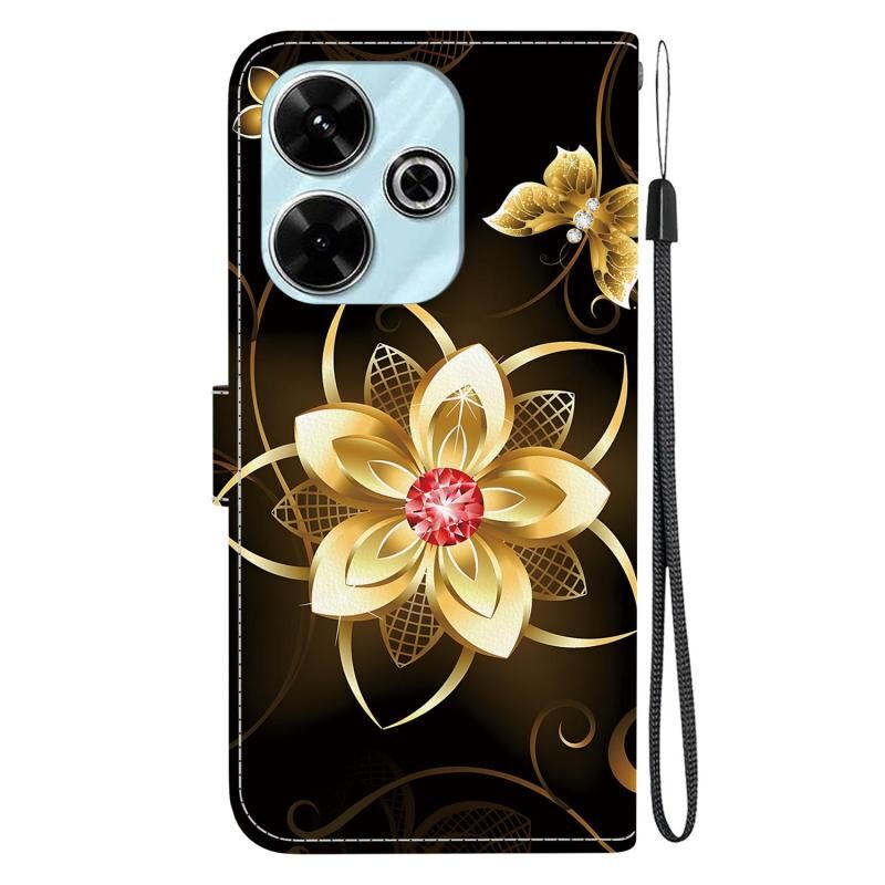 Θήκη τηλεφώνου από δέρμα με πολύχρωμη σχεδίαση κρυστάλλινης υφής για Redmi 13 4G / Poco M6 (Λευκά φτερά πεταλούδας)