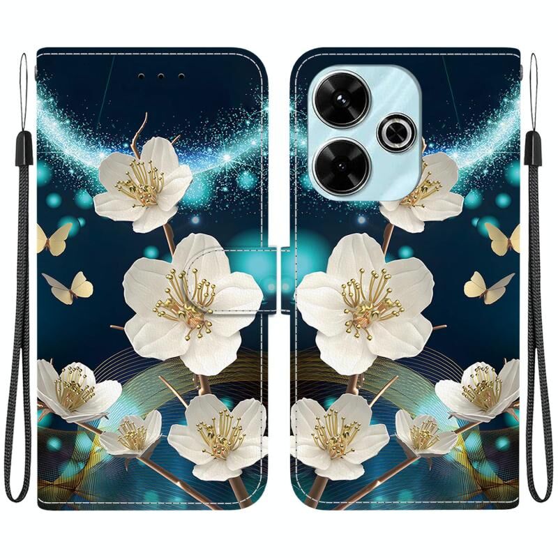 Θήκη τηλεφώνου από δέρμα με κρυσταλλική υφή και πολύχρωμο σχέδιο για Redmi 13 4G / Poco M6 (Μαγνολία)