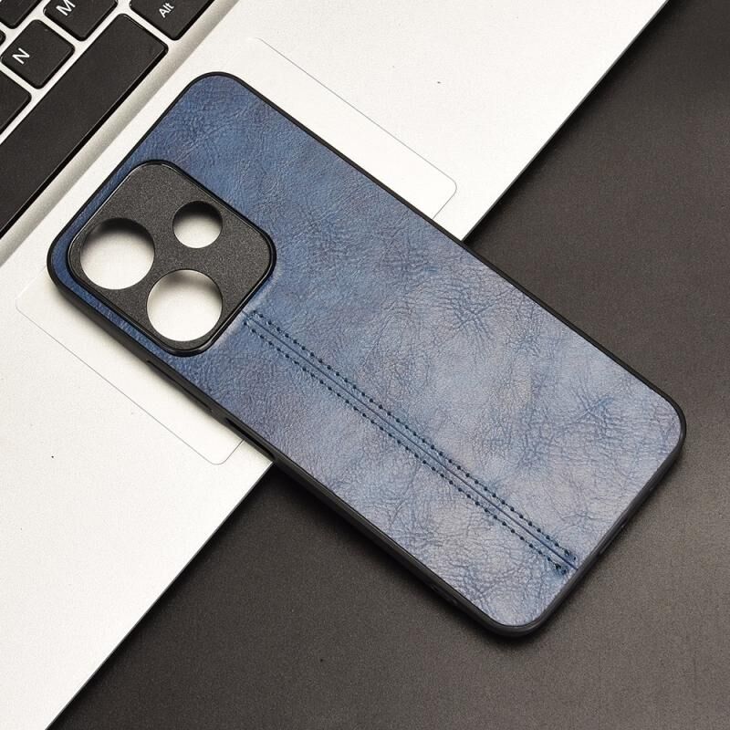 Για Redmi 13 4G / Redmi Σημείωση 13R 5G αγελάδα μοτίβο ραπτικής πίσω κάλυμμα τηλέφωνο υπόθεση (μπλε)