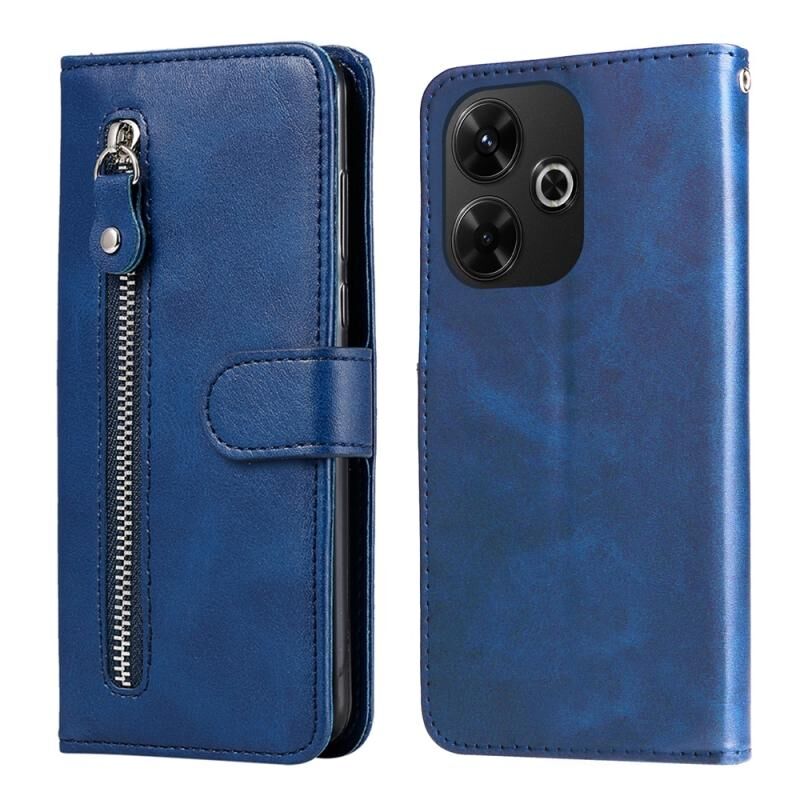 Θήκη τηλεφώνου από δέρμα με υφή μοσχαριού και φερμουάρ για Redmi 13 4G / Redmi Note 13R (Μπλε)
