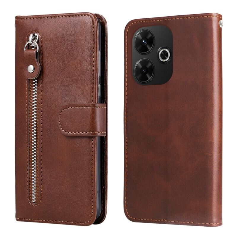 Θήκη τηλεφώνου από δέρμα με υφή μοσχαριού και φερμουάρ για Redmi 13 4G / Redmi Note 13R (Χρυσορόδινο)