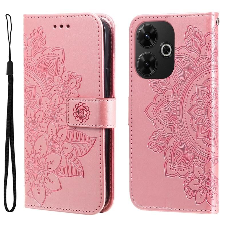 For Redmi 13 4G / Redmi Note 13R Seven-petal Flowers Embossing Leather Phone Case(Rose Gold)