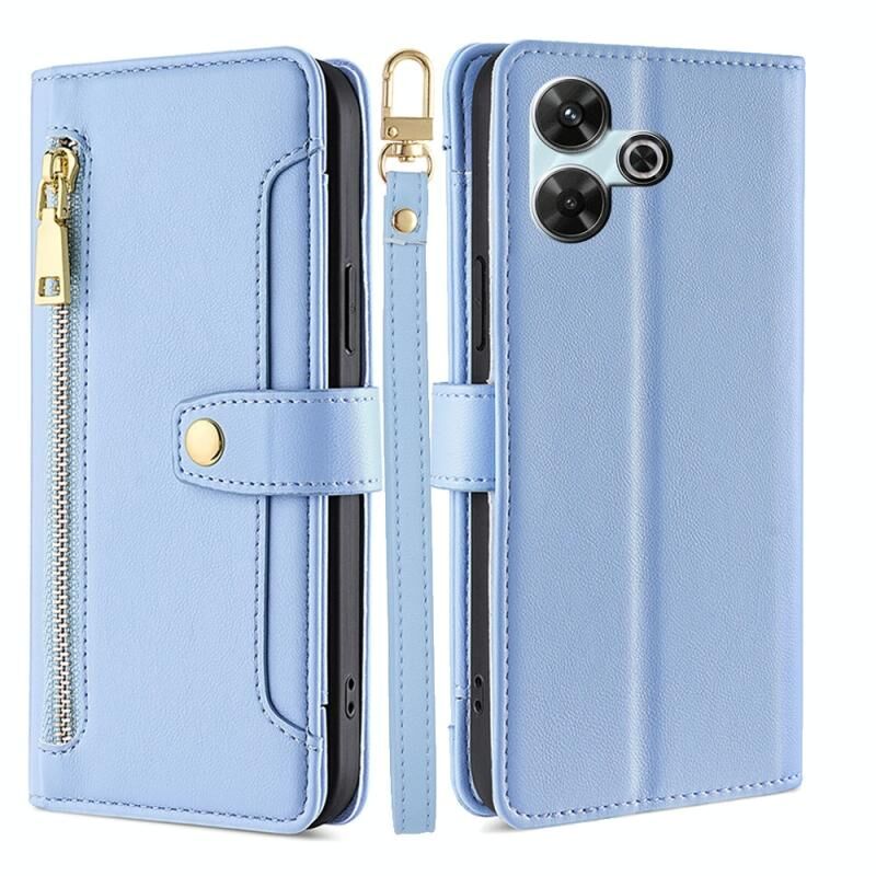 Για Redmi 13 4G Πρόβατα Υφή Cross-body φερμουάρ πορτοφόλι δερμάτινη θήκη τηλεφώνου (μπλε)