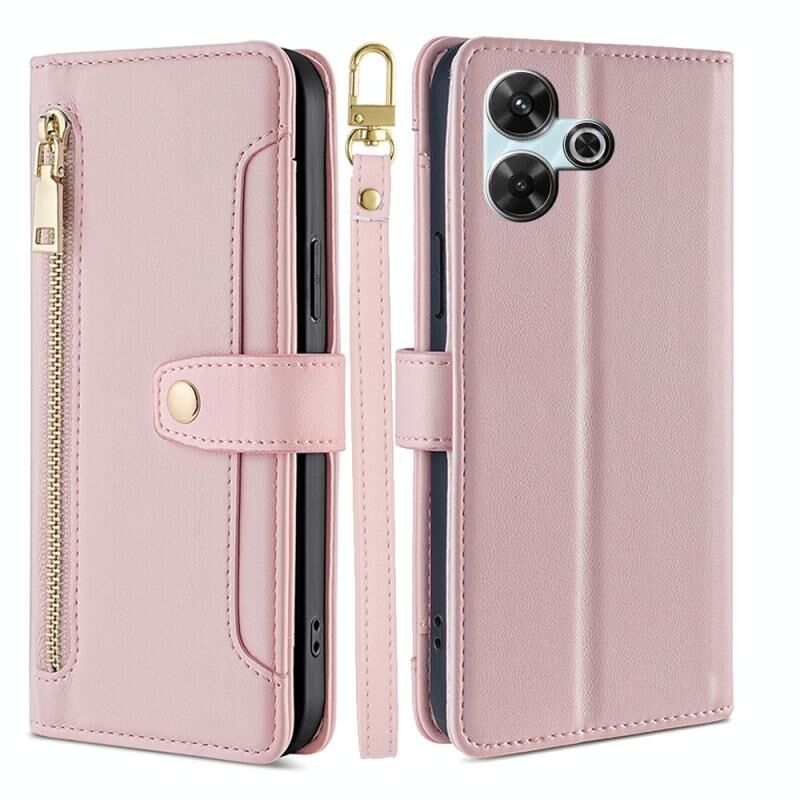 Για Redmi 13 4G Πρόβατα Υφή Cross-body φερμουάρ πορτοφόλι δερμάτινη θήκη τηλεφώνου (ροζ)