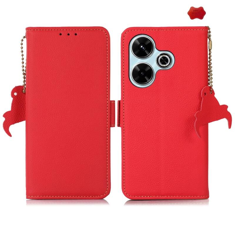 Θήκη τηλεφώνου από γνήσιο δέρμα TJ με μαγνητικό κλείσιμο για Redmi 13 4G (Μαύρο)