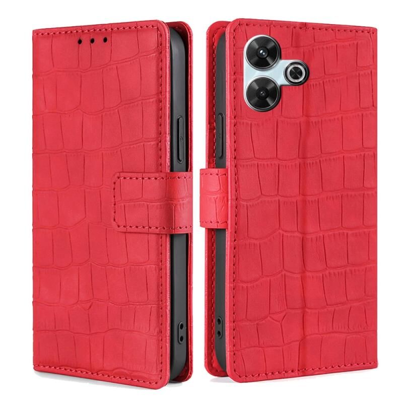 For Redmi 13 4G Skin Feel Crocodile Magnetic Clasp Leather Phone Case(Red)