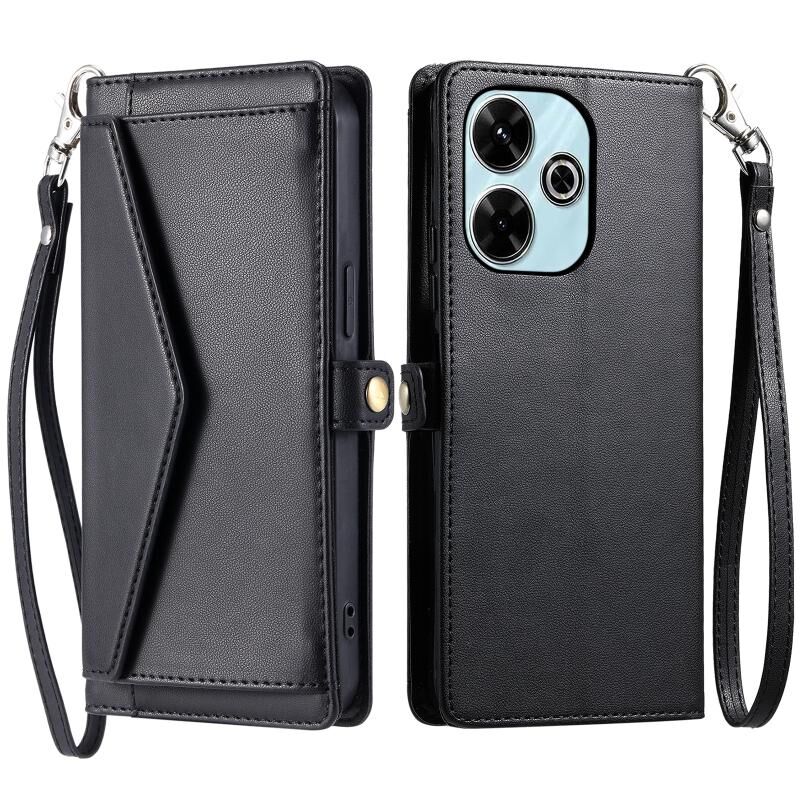For Redmi 13 4G Wallet Multi-card Slot Leather Phone Case with Lanyard(Black)