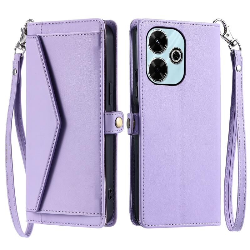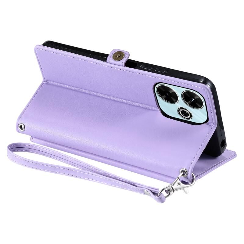 Για Redmi 13 4G πορτοφόλι πολλαπλών καρτών Slot δερμάτινη θήκη τηλεφώνου με κορδόνι (μωβ)