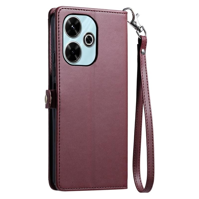 Για Redmi 13 4G Πορτοφόλι Multi-card Slot Δερμάτινη θήκη τηλεφώνου με κορδόνι (κόκκινο κρασί)