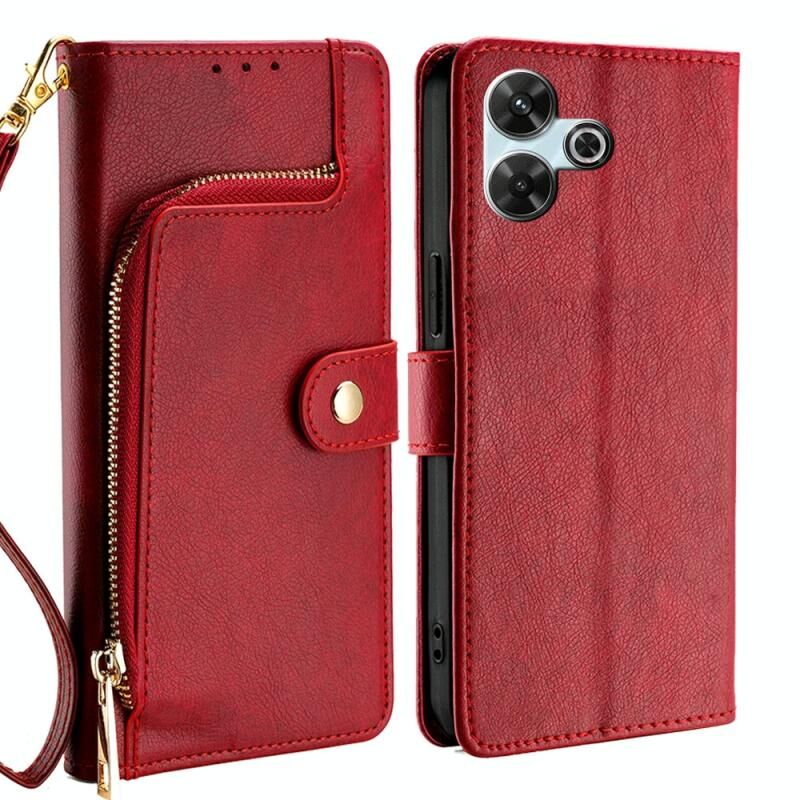 Για Redmi 13 4G φερμουάρ τσάντα δερμάτινη θήκη τηλεφώνου (κόκκινο)