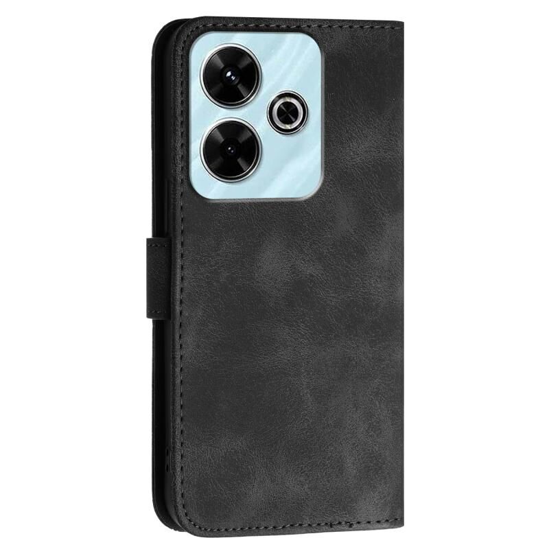 For Redmi 13 YX0080 Grid Butterfly Embossed Pattern Leather Phone Case with Lanyard(Black)