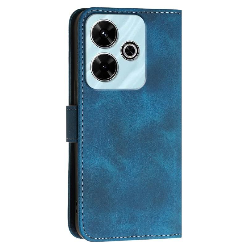 For Redmi 13 YX0080 Grid Butterfly Embossed Pattern Leather Phone Case with Lanyard(Dark Blue)