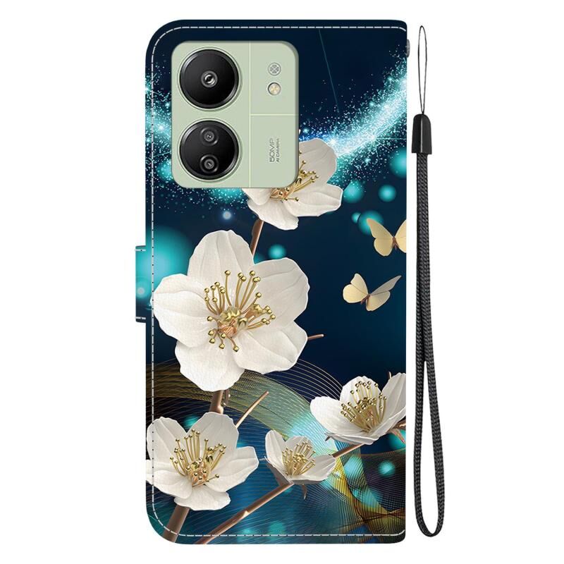 Θήκη τηλεφώνου από δέρμα με πολύχρωμο σχέδιο κρυστάλλινης υφής για Redmi 13C 4G / 5G / 13R 5G (Μαγνολία)