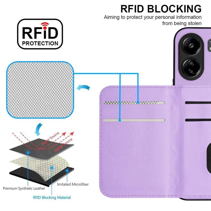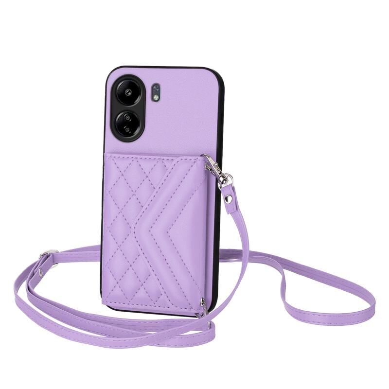 Για Redmi 13C 4G Παγκόσμια Rhombic Υφή κάρτα τσάντα RFID τηλέφωνο υπόθεση με μακρύ κορδόνι (ανοιχτό μωβ)