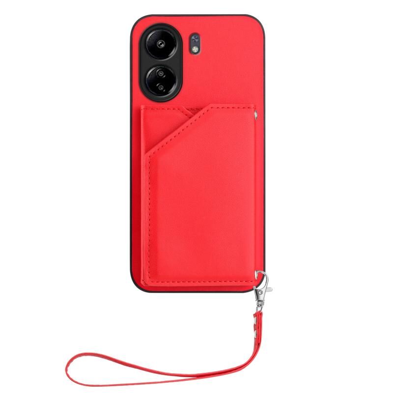 Για Redmi 13C 4G Global Skin Feel Τέσσερις υποδοχές καρτών υπόθεση τηλεφώνου με λουράκι καρπού (κόκκινο)
