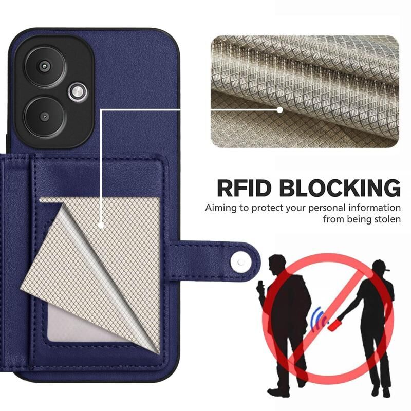 Για Redmi 13C 5G / 13R Button Card Bag RFID Anti-theft τηλέφωνο υπόθεση (μπλε)