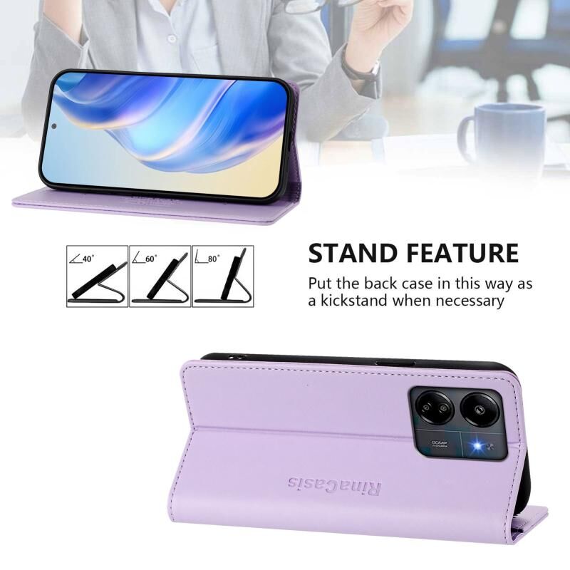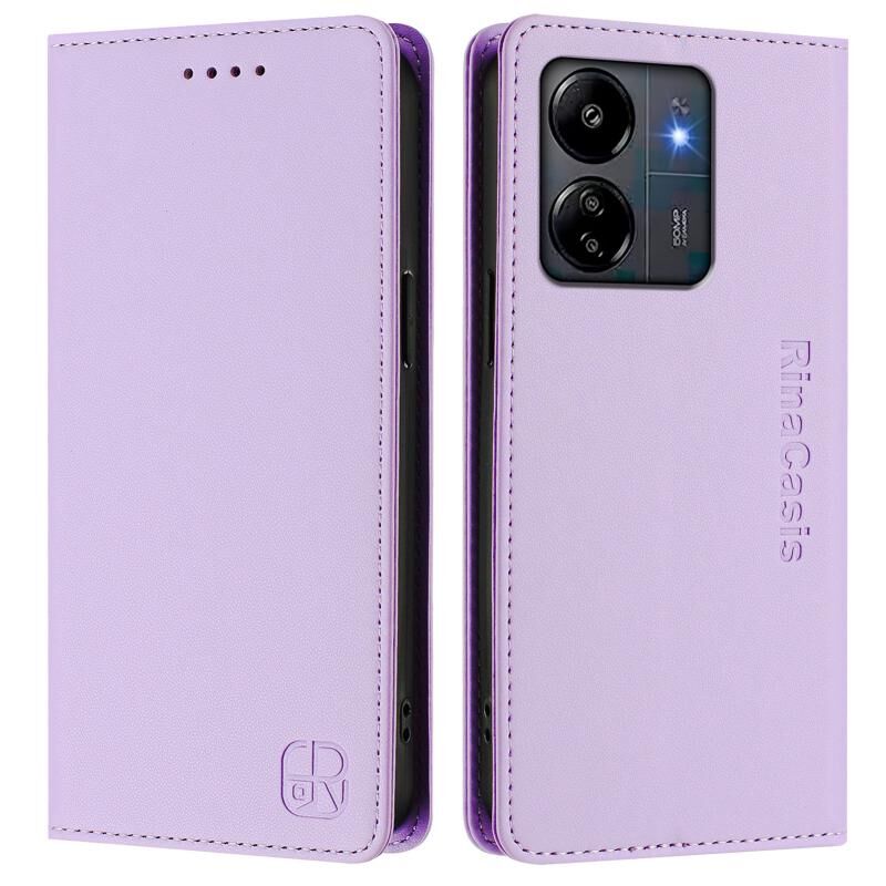 Θήκη τηλεφώνου από δέρμα με μαγνητική απορρόφηση και διπλή πτύχωση για Redmi 13C 5G / 4G Global RC01 (ανοιχτό μωβ)