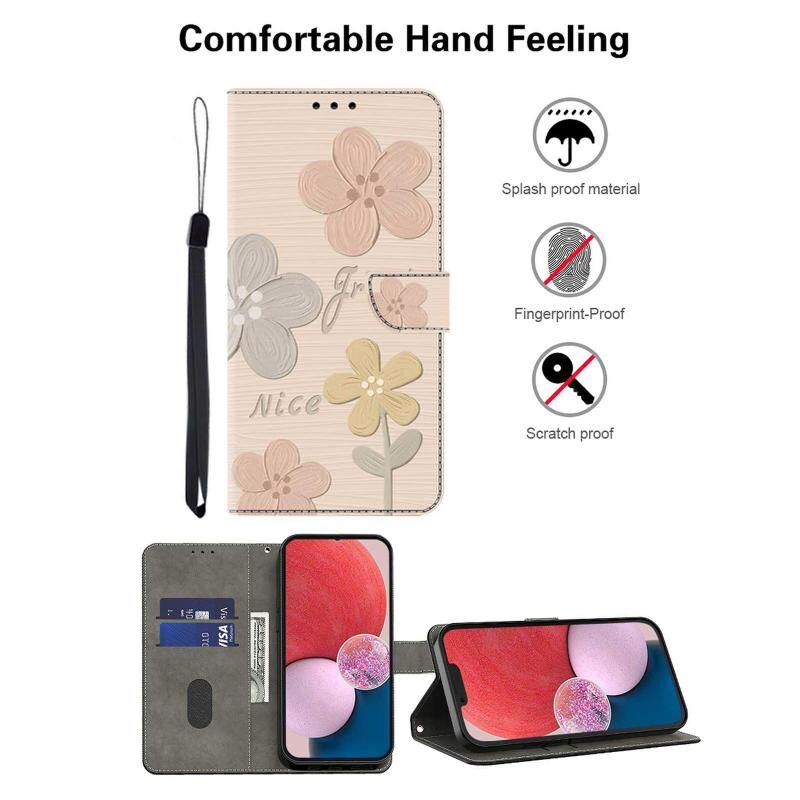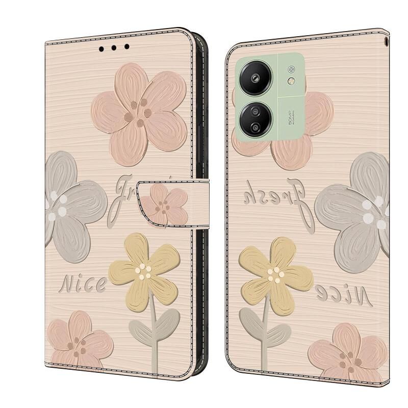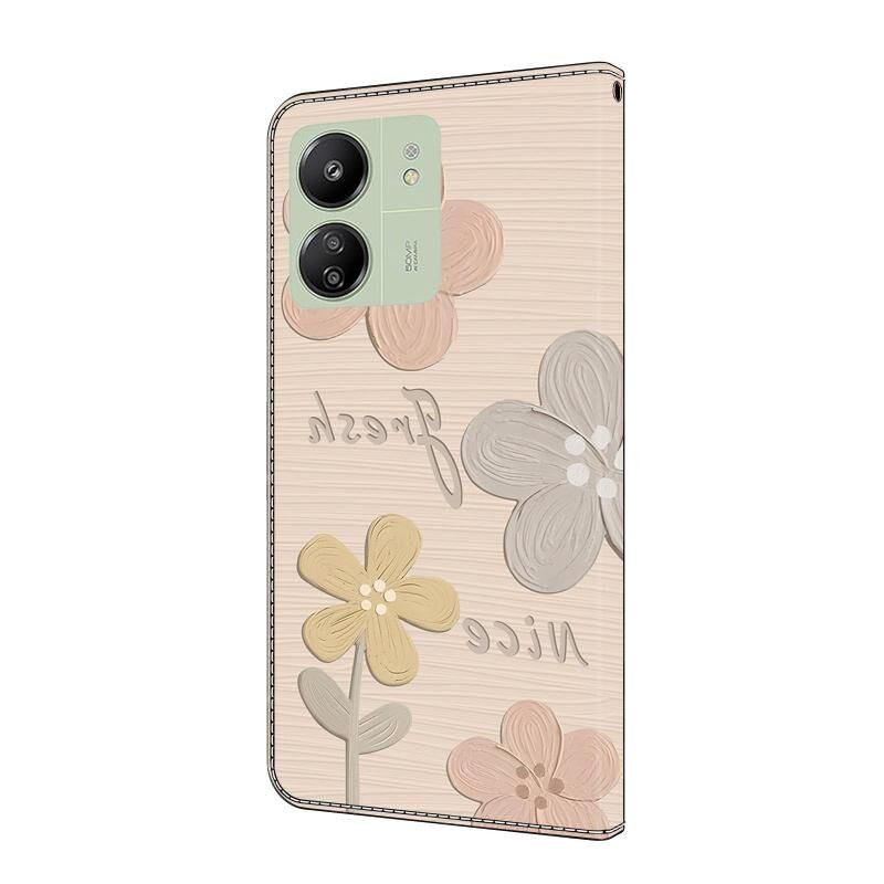 Θήκη τηλεφώνου από φρέσκο ​​βαμμένο δέρμα για Redmi 13C (Μπεζ Λουλούδια)