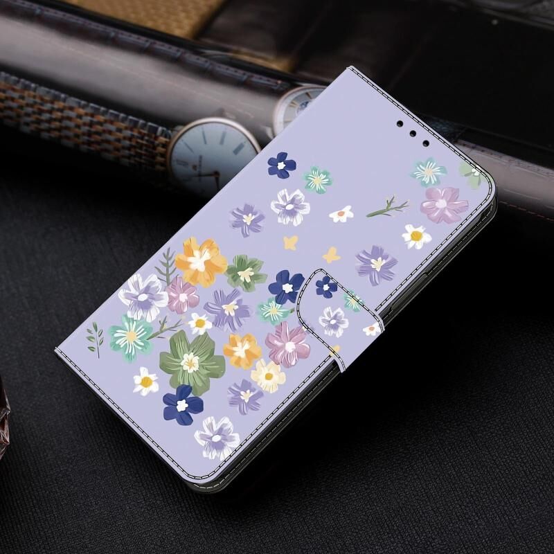 Θήκη τηλεφώνου από φρέσκο ​​βαμμένο δέρμα για Redmi 13C (Μωβ λουλούδια ζωγραφικής με λάδι)
