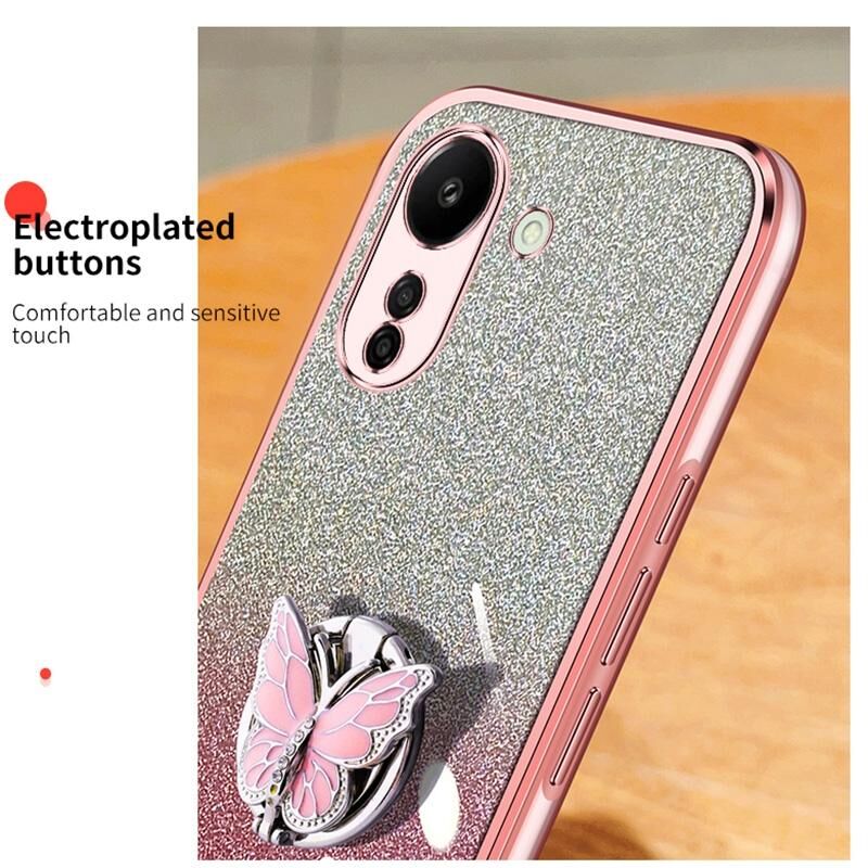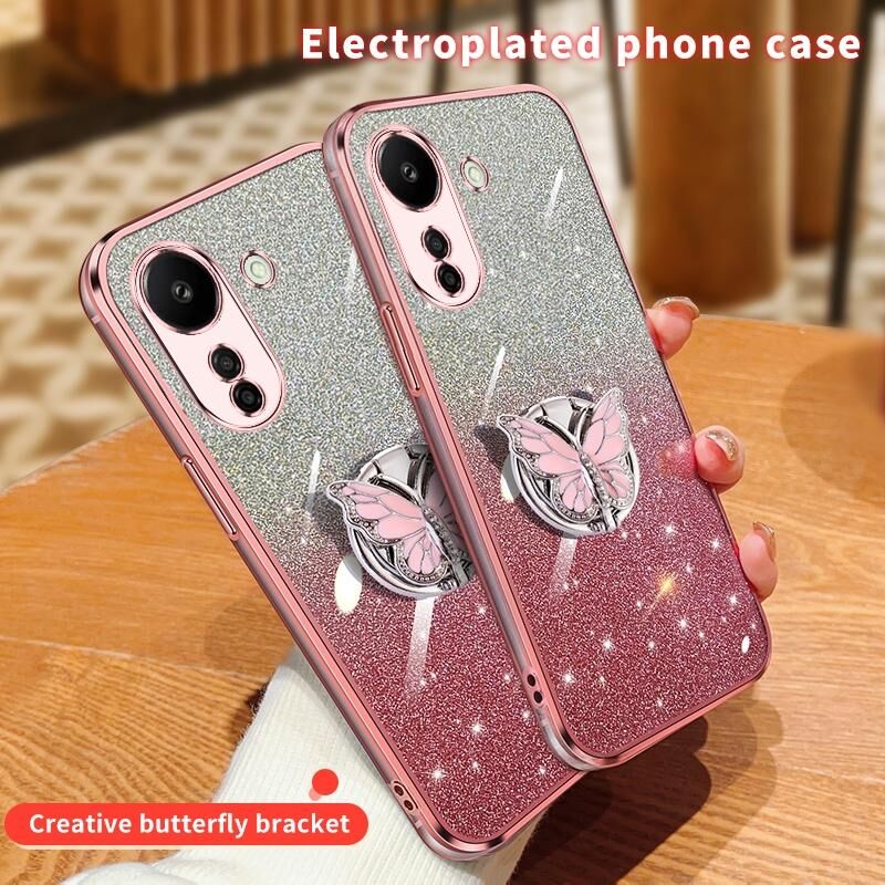 Για Redmi 13C επιμεταλλωμένο διαβάθμιση Glitter πεταλούδα κάτοχος TPU τηλέφωνο υπόθεση (μωβ)