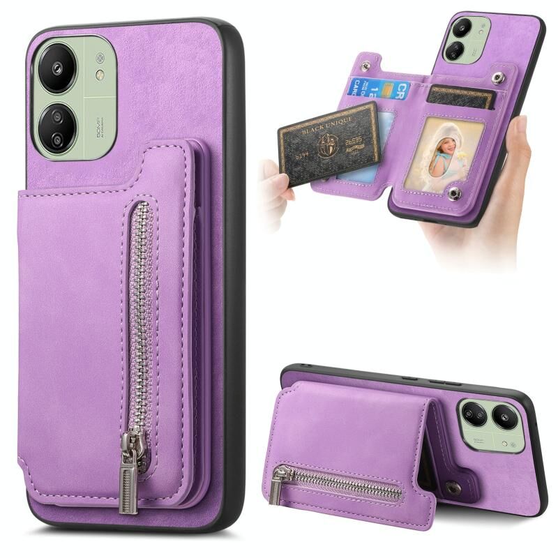 Θήκη κινητού τηλεφώνου με φερμουάρ, τσέπη για κάρτες και MagSafe για Redmi 13C / Poco C65 / M6 (Κίτρινο)