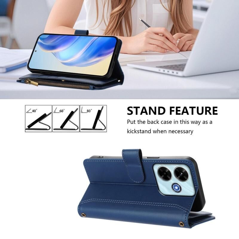 Για Redmi 13x / Redmi 13 4G / 5G Μαγνητικό Κλείσιμο 9 Θήκες Κάρτας Δερμάτινη Θήκη με Φερμουάρ και Λουρί Χεριού (Σκούρο μπλε)
