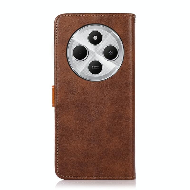 Για Redmi 14 4G KHAZNEH Θήκη Τηλεφώνου από Δέρμα με Υφή Δέρματος Μοσχαριού (Καφέ)