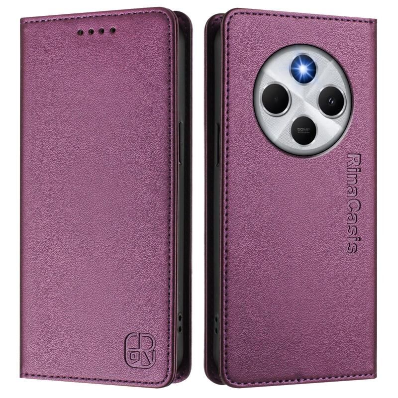 Θήκη τηλεφώνου από δέρμα με μαγνητική απορρόφηση και διπλή πτύχωση για Redmi 14C 4G / 14R 5G Global RC01 (Βιολετί)