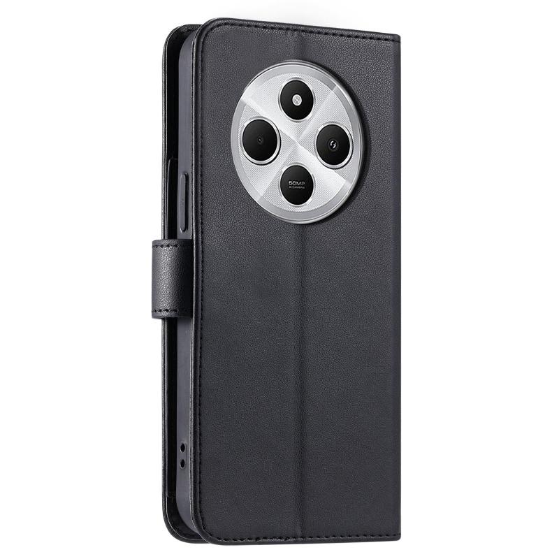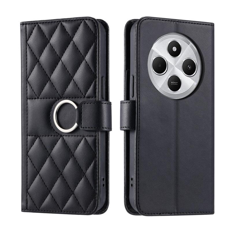 For Redmi 14C 4G / 14R 5G Global Ring Buckle Rhombic Leather Phone Case(Black)